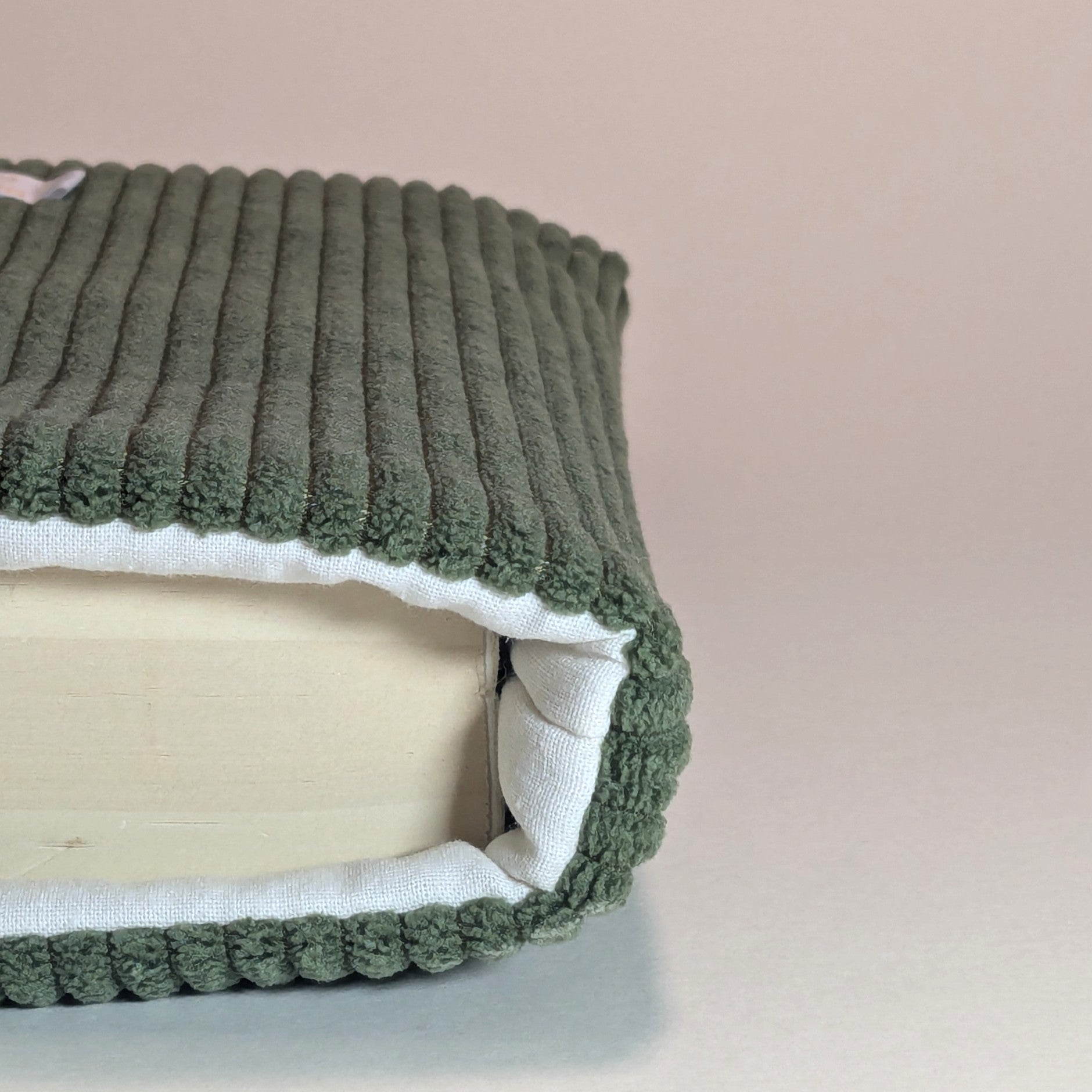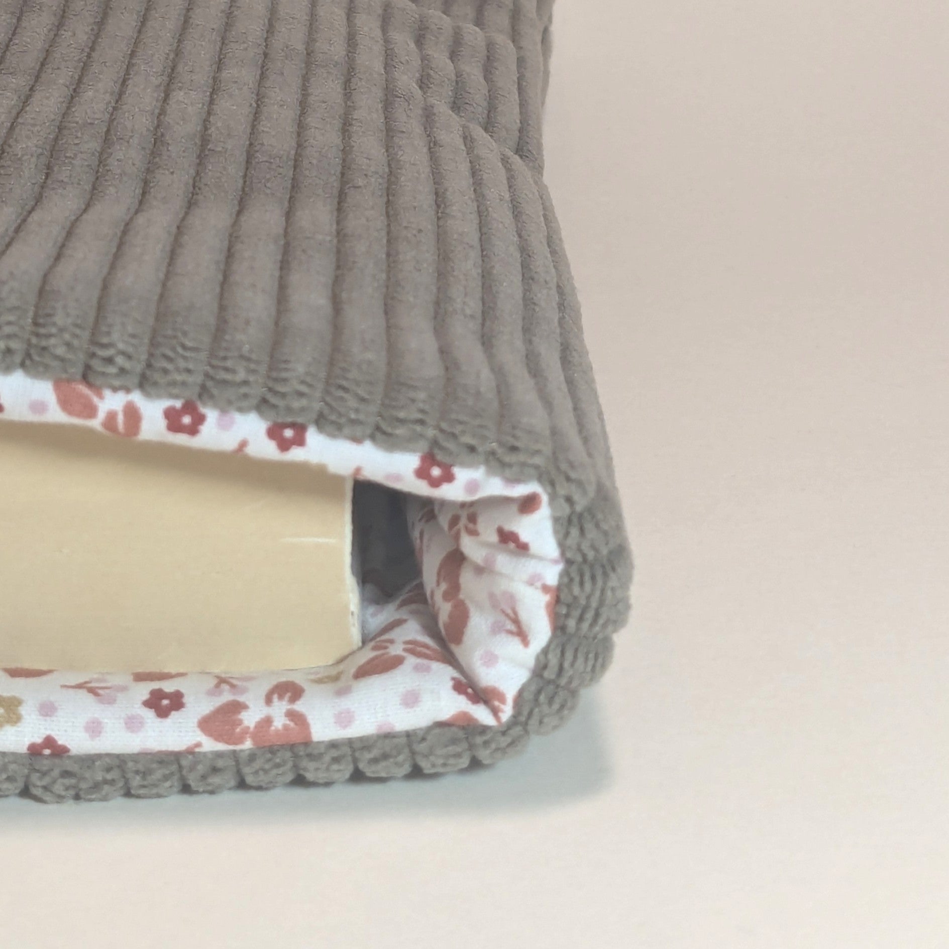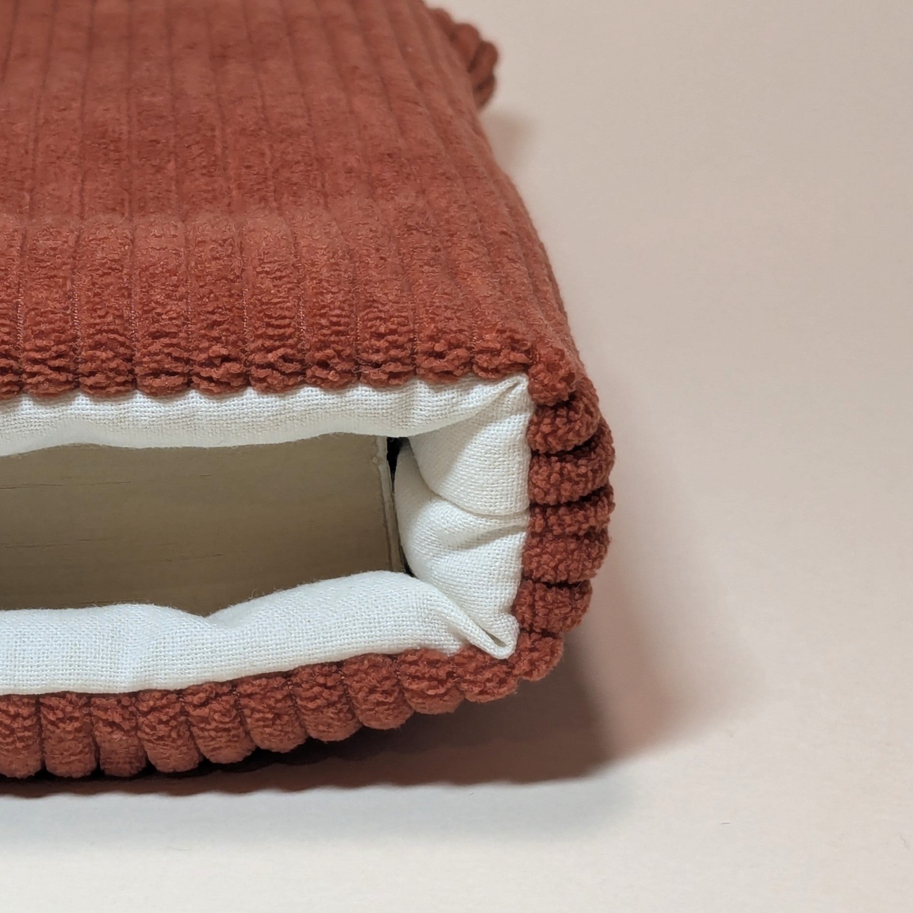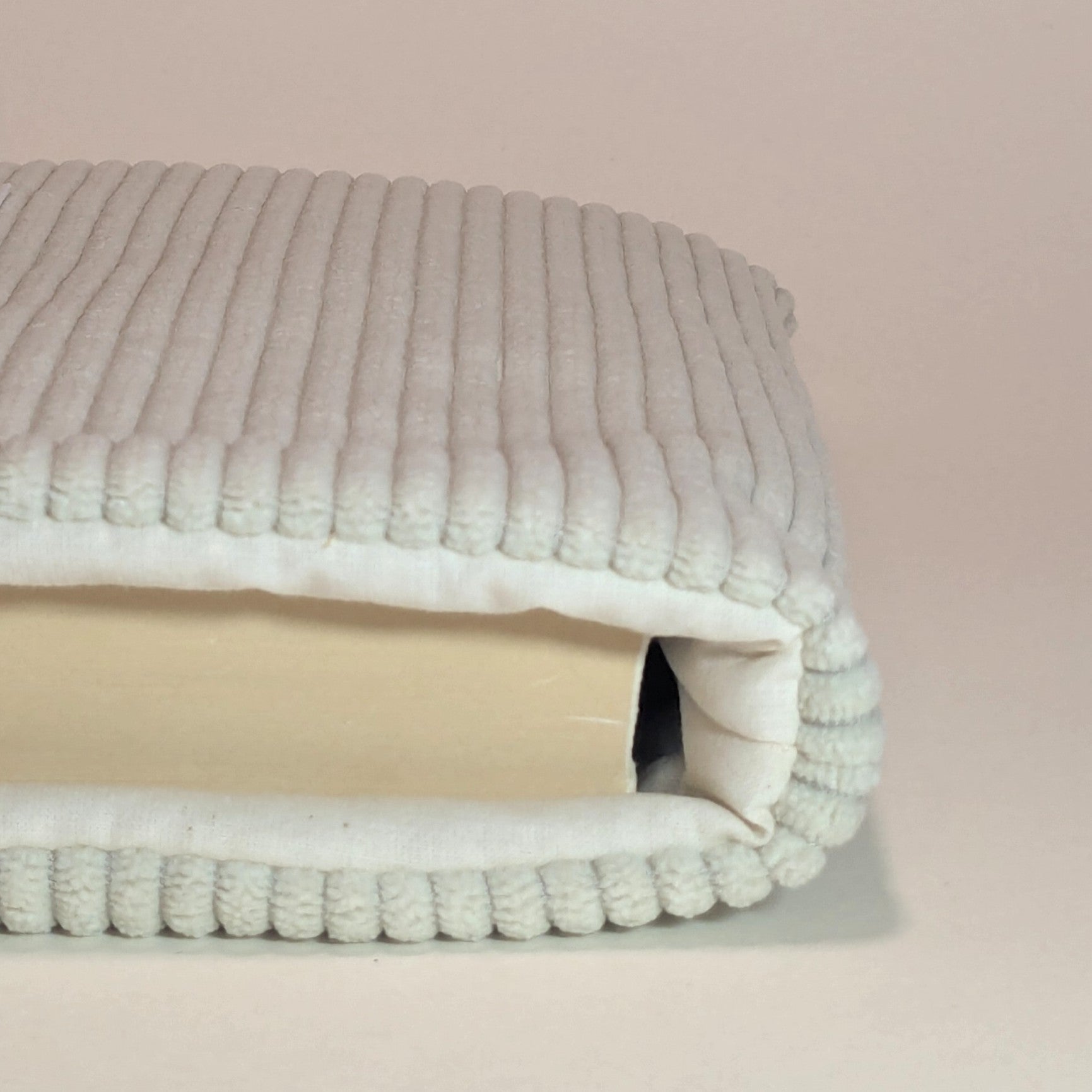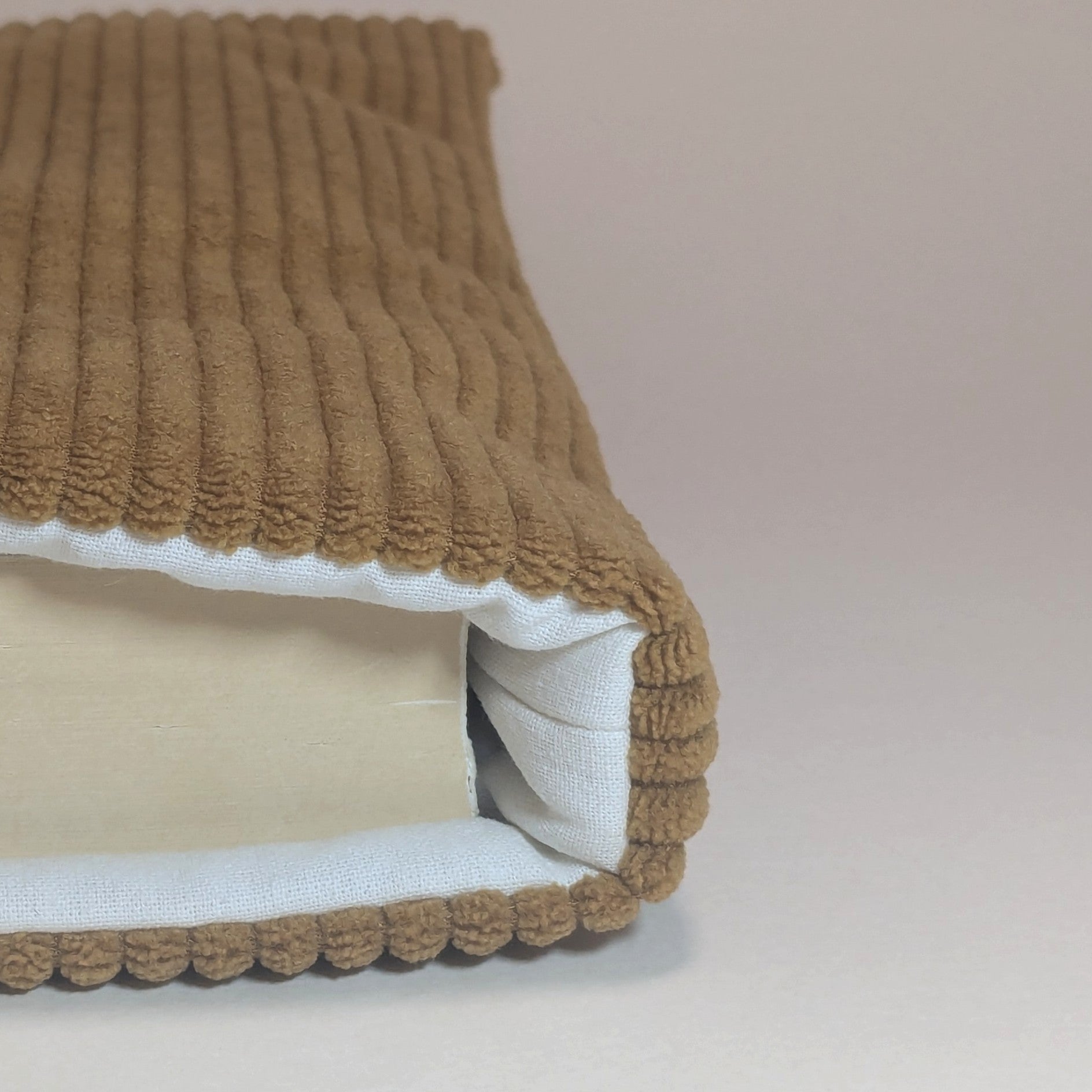Du velours côtelé, un tissu d’ameublement déjà doublé avec une très haute résistance. Un rembourrage en ouate 100g/m² contre les chocs et les déformations. Des intérieurs 100% coton ou éponge de bambou plein de douceur. Du sherpa pour un maximum de style.